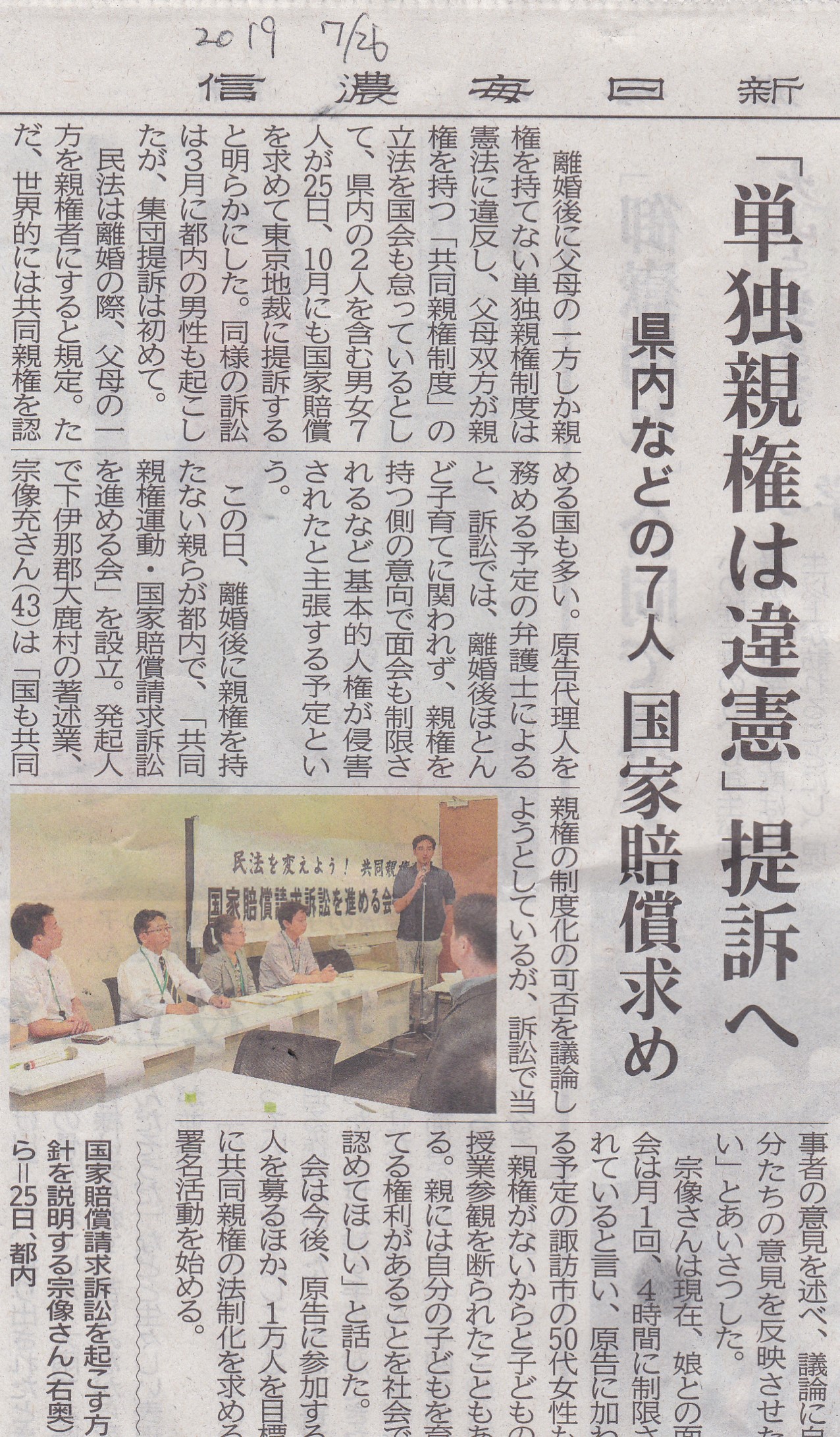信濃毎日2019.7.26