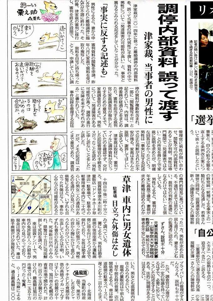 中日新聞:調停内部資料誤って渡す