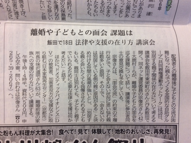 信濃毎日:離婚や子どもとの面会 課題は