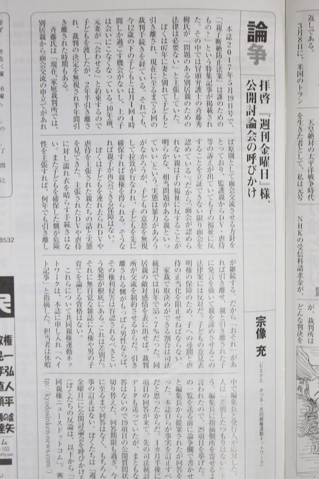 この経過について、kネット運営委員の宗像名義で「週刊金曜日」誌面(2018年4月13日号)で公表するとともに、公開討論会をkネットから呼びかけました。
